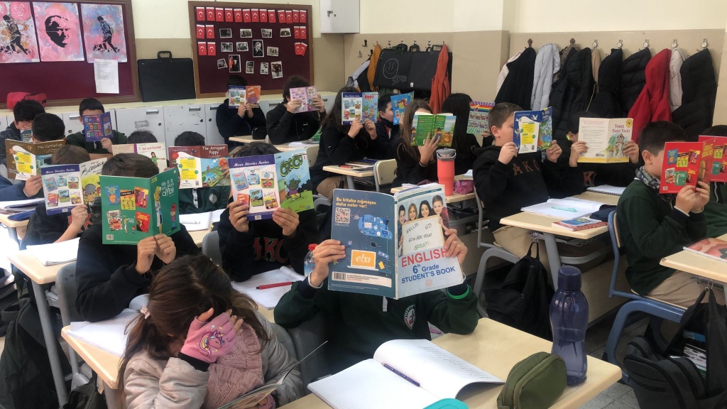 6B Sınıfı öğrencileri Şeniz Ebru TOYRAN rehberliğinde İngilizce kitap okuma etkinliği gerçekleştirdi.
